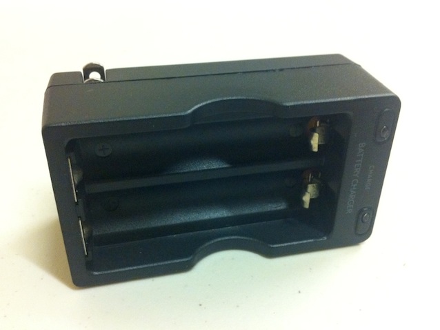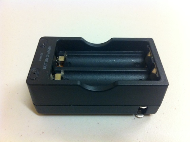 Dual battery charger for rechargeable 3.7V 18650 batteries, with convenient flip-out wall plug built-in. Charger appearance may be slightly different than that shown. Caution: Do not recharge disposable batteries in this charger.